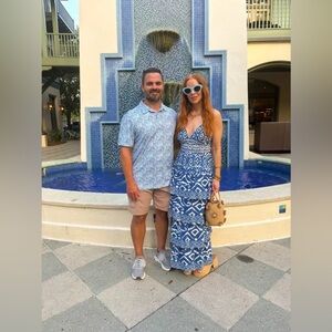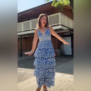 NWT Caroline Constas Blue & White Geometric Ikat Maxi Dress – Size Large