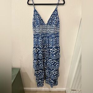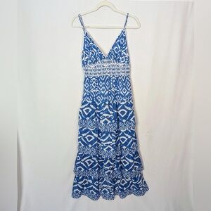 NWT Caroline Constas Blue and White Geometric Ikat Maxi Dress in size Large
