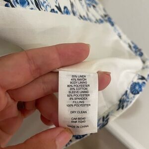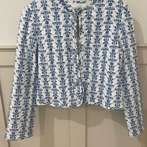 NWT Caroline Constas Bow Floral Parchwork Linen Jacket Blue/White Size Small