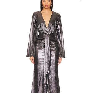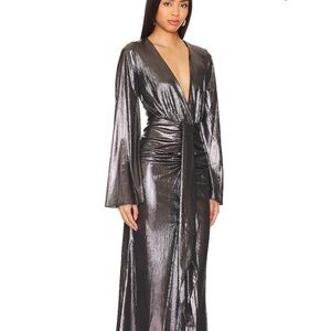 NWT Caroline Constas Metallic Maroon Dorian Dress Size Small