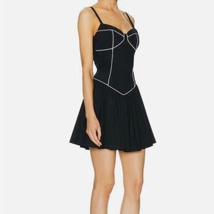 Elegant mini dress by Caroline Constas. Features a chic black and off-white design. Ideal for versatile styling. Backless.