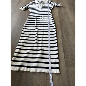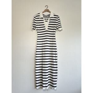CAROLINE CONSTAS Knit Stretch Midi Dress Striped White/Navy Size XL