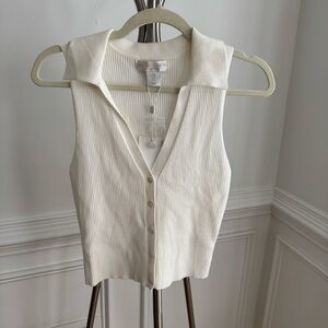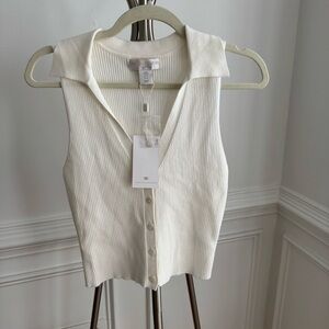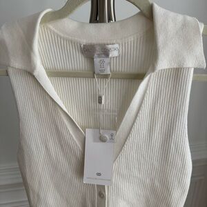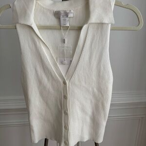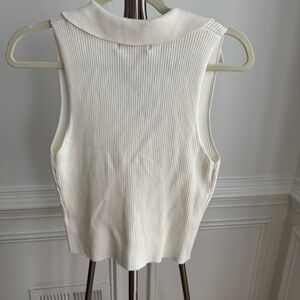 NWT Caroline Constas White Sleeveless Collared Ribbed Knit Top Size M