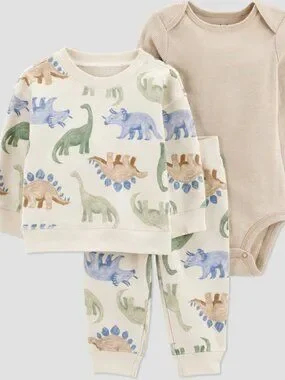 NWT Carter’s 18M Baby Boy 3-Piece Outfit Dinosaur Set Sweatshirt Pants Onesie
