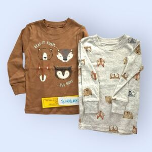Keep your little one snug in these two adorable brown, white and gray pajama sets. Featuring cute animal prints, these pajamas are perfect for bedtime stories and sweet dreams.