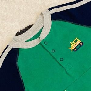 NWT New Carter's Boy 18 Months Green Blue Gray Tractor Varsity Sports Onesie Jumpsuit Romper One Piece Playsuit Bodysuit: