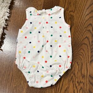 Charming diaper cover with colorful polka dots. Features a playful dinosaur applique. Ideal for a fun look.