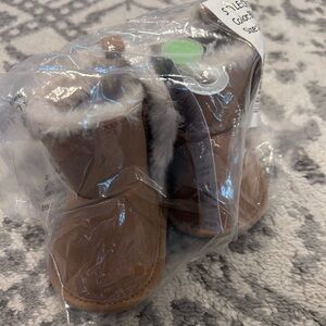 NWT Carter’s Infant Slippers- Tan/3-6M & NWT Bow Faux Fur Boots- Brown/0-3M