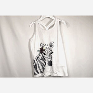 This cotton tank is light and breezy. It is great for warm weather, activities, or as a bathing suit cover-up. The artistic zebra design is a nice touch for older girls. This item is new with tags.