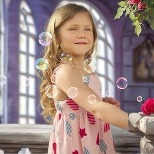 Charming pink dress featuring playful red and blue popsicle design. Ideal for sunny days.