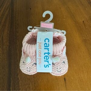 NWT Carter’s Pink Unicorn Knit Baby Booties, crib shoes, socks newborn size.
