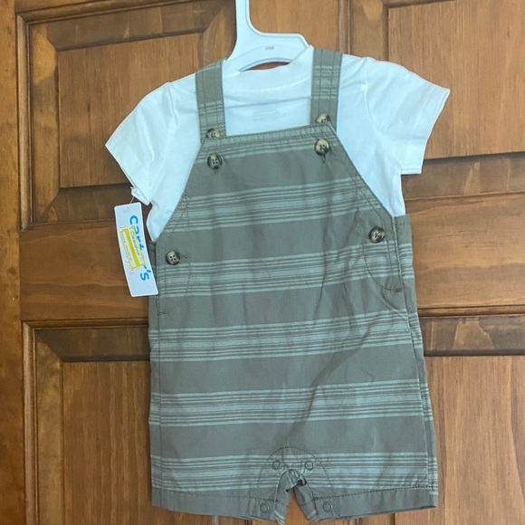 NWT Carters Striped Gray and White Baby Overalls with T-Shirt