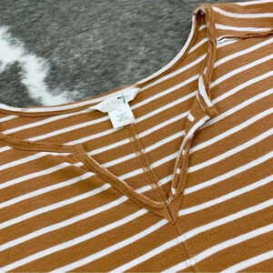 Here’s a super cute top by Caslon. This is the Split Neck Striped Top in a size small. Great shape. Brand new with tags. Nice shade of brown and white color combo. Comfy and perfect for everyday wear. :)