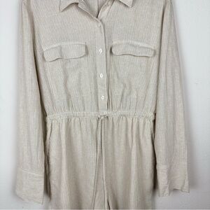 NWT Caslon Stripe Long Sleeve Linen Blend Romper Tan Safari - White Leah Stripe