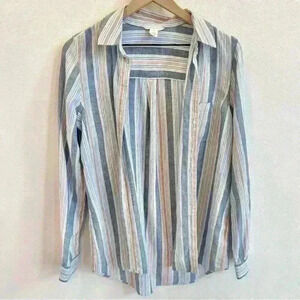 NWT Caslon Women’s Linen Blend Button-Up Striped Nordstrom Shirt Size X-Small