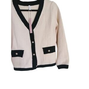 NWT Casly Lamiit V-Neck Cream Cardigan Sweater M Pearl Button Academia Preppy