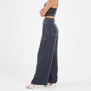 Lightweight linen blend pant for warm weather seasons. Crafted in a wide-leg silhouette with removable D-ring belt and patch pockets. Finished with topstitch detailing throughout the seams for an elevated look.