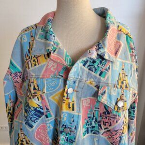 NWT - Castles of Disney Parks D23 Postage Stamps Denim Jacket (Size 2X)