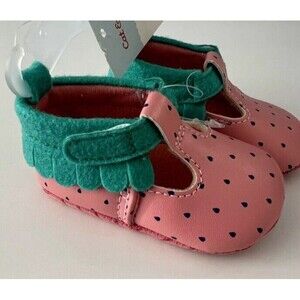 NWT “Cat & Jack” 0-3M Baby Girls' Pink Strawberry Moccasin style Shoes 🎀 💖🍓