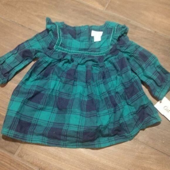 NWT Cat & Jack size 3-6 month plaid dress. Green/teal plaid with matching solid diaper cover. Excellent condition