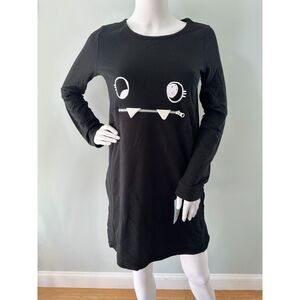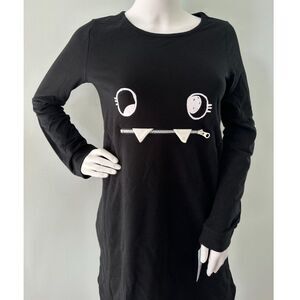 NWT Cat & Jack Black Monster Face Zipper Mouth Long Sleeve Dress size Girls XL