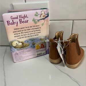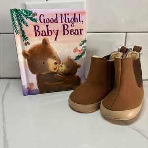 NWT Cat & Jack Brown Tan Ankle Boots Suede Like Plush Lining 3-6 mos, Kids Socks