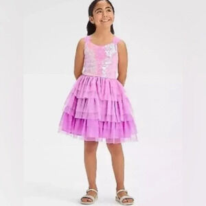 NWT Cat & Jack Girls' Sleeveless Ombre Sequin Tiered Tull Dress - Large (10/12)