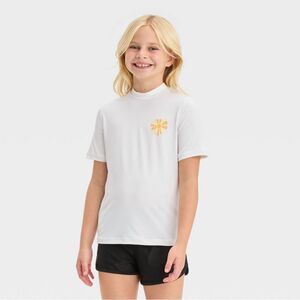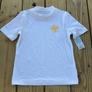 NWT Cat & Jack Size Small (6/7) Sun Print White Short Sleeve Rash Guard Top