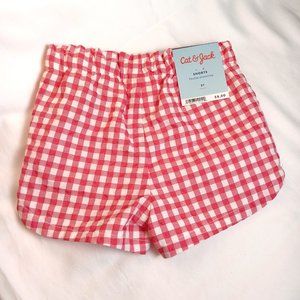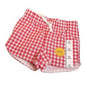 NWT Cat & Jack Toddler Girls Coral Pink Gingham Woven Pull-On Drawstring Shorts