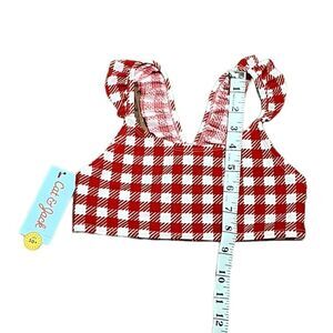 NWT Cat & Jack Red And White Plaid Ruffled Swim Top, Size S (6/6X)