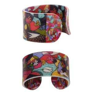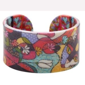 Artistic Geometric Cats & Tulips Bracelet Cuff NWT