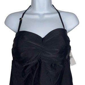 NWT Catalina Black Adjustable Strap Halter Tankini Swim Top Womens Large