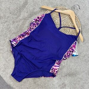 NWT Catalina Women’s Racer Back Tank One-Piece Swimsuit in Purple Plus Size 2X