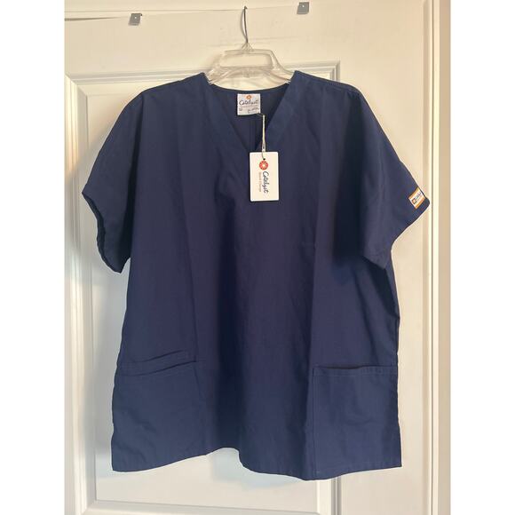 NWT Catalyst Navy Blue Scrub Top Pullover V-Neck Pockets Size Large