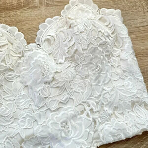 Scalloped, floral guipure lace is sculpted to form the flattering cropped Havana corset. The Havanna is the perfect, versatile piece that can not only be styled to classical perfection when coupled with the flowing Delia skirt but once teamed with the Aurelia trouser, it can be transformed to the ultimate in bohemian wedding chic. Start your very own creative journey with the Havanna.