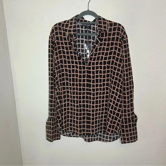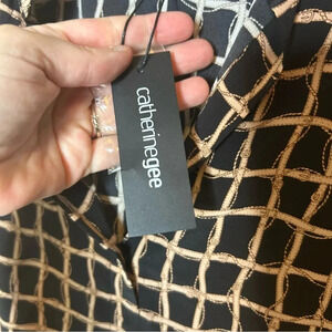 tags: New with tags Catherine Gee blouse, equestrian print silk top, luxury silk blouse, women's size small, stylish equestrian print, sophisticated blouse, fall fashion, elegant silk top, designer blouse, classic equestrian style, chic wardrobe addition, high-end fashion, tailored silk shirt, fashionable workwear, equestrian-inspired blouse, silk blouse for women, timeless fashion piece, trendy blouse, luxury fashion top, must-have silk blouse, Catherine Gee silk top, versatile silk shirt, fashionable blouse for women