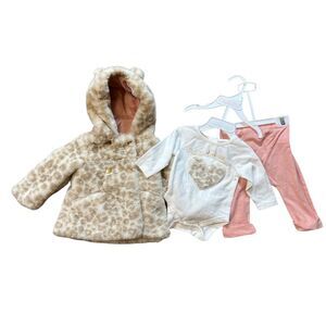 NWT Catherine Malandrino Mini Baby Girl 3 Piece Set Hooded Leopard Print Jacket