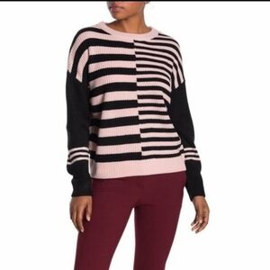 NWT Catherine Malandrino Striped Color Block Pink Black Sweater