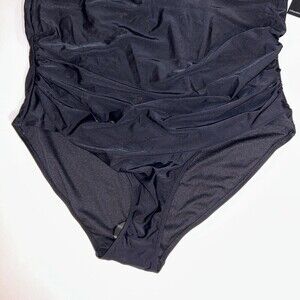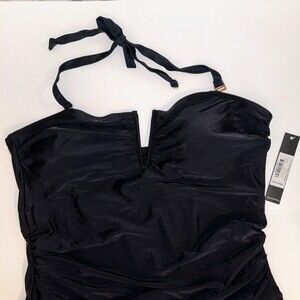NWT Catherine Malandrino V Wire Shirred Black 1 Piece Bandeau Swimsuit Plus S 2X