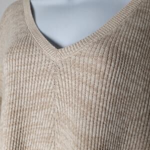 NWT Catherines Beige V-Neck Knit Sweater Women’s Plus Size 2X Soft Cotton Blend