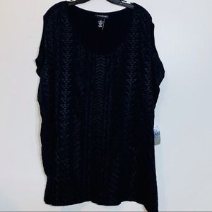 NWT Catherines Embroidery Embossed Black Shirt Size 2X