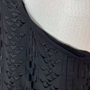 Gorgeous and comfortable shirt has beautiful embroidered embossed patterns - cute cold shoulder design - back is a stretchy T-shirt feel fabric - dress it up or down - great quality brand - new with tag