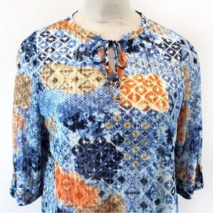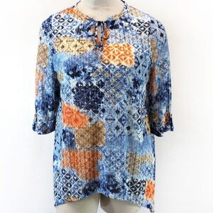 NWT Catherines Multi Tile Sunrise Asymmetrical Tunic Blouse