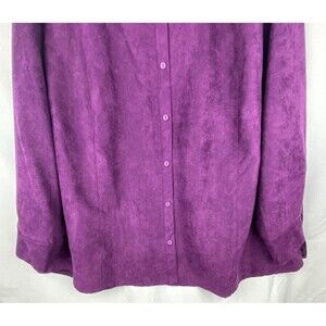 NWT Catherines Womens Button Down Top 3X Purple Faux Suede Long Sleeve Blouse