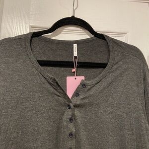 Long sleeve gray Flowy rayon Henley pullover tee shirt