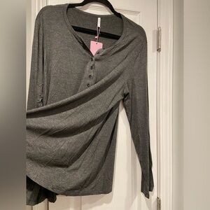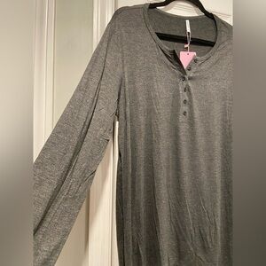 NWT Cathy Size 2XL Soft Long Sleeve Flowy Gray Henley Pullover Tee Shirt