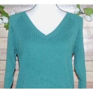 NWT Cato Est. 1946 Green Pullover Sweater Size XL Open Long Sleeve V-Neck Ribbed