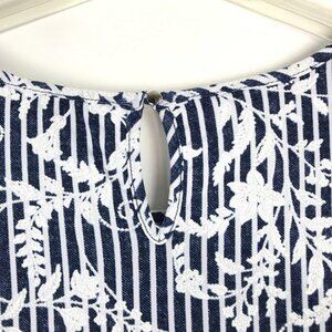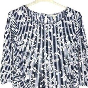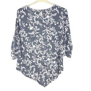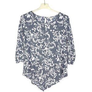 NWT Cato L Blue Tunic Blouse 3/4 Sleeve Floral Vertical Stripe Asymmetrical Hem