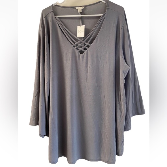 NWT Cato Womens Top Gray Criss Cross Straps On V-Neck Blouse Plus Size 22/24W