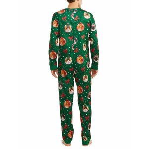 Mens size Large L with cat faces throughout in ornaments patterned that LIGHT UP! Battery operated control in pocket will turn lights on / off with the flip of a switch. PJ union suit
